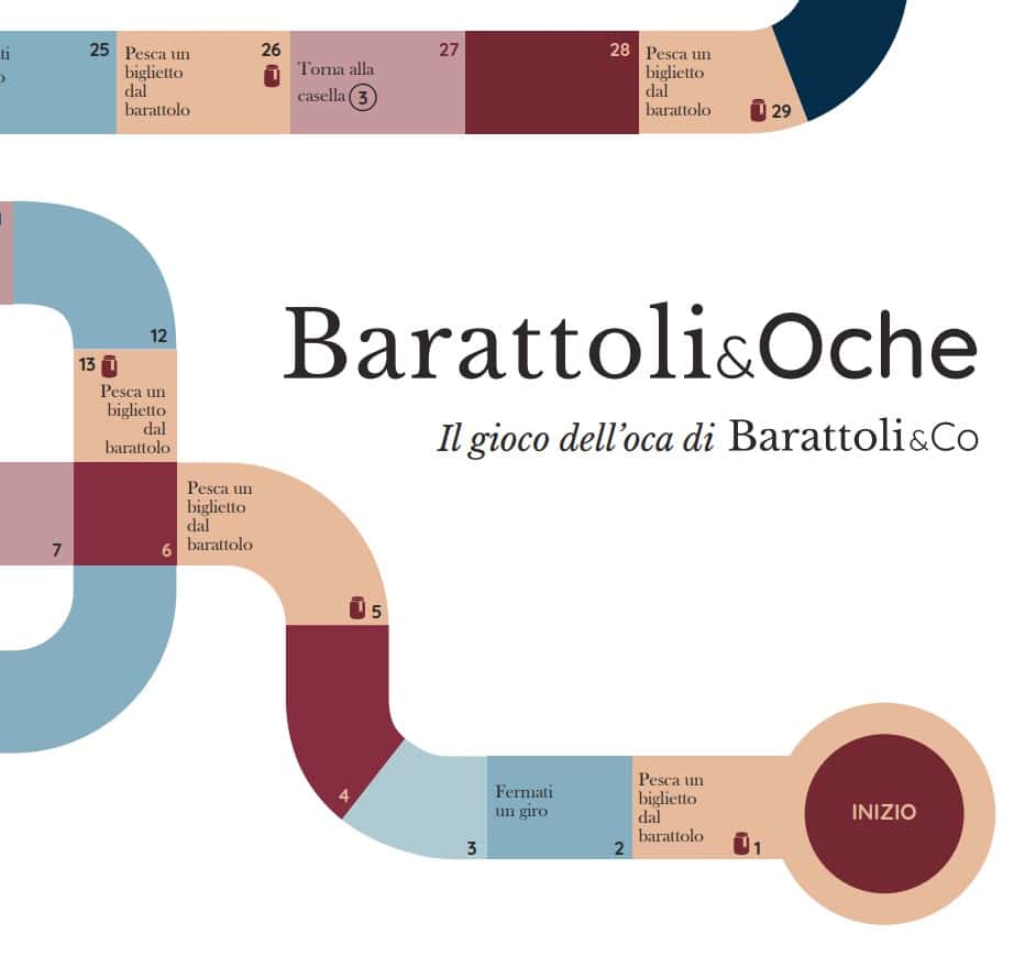 Barattoli&Oche è lo speciale gioco dell’oca by Barattoli&Co, basato sulla conoscenza di aneddoti letterari e sfide all’ultimo libro: l’idea perfetta per trascorrere un pomeriggio in famiglia o tra amici. Acquista e scarica il documento e goditi qualche ora di puro divertimento.